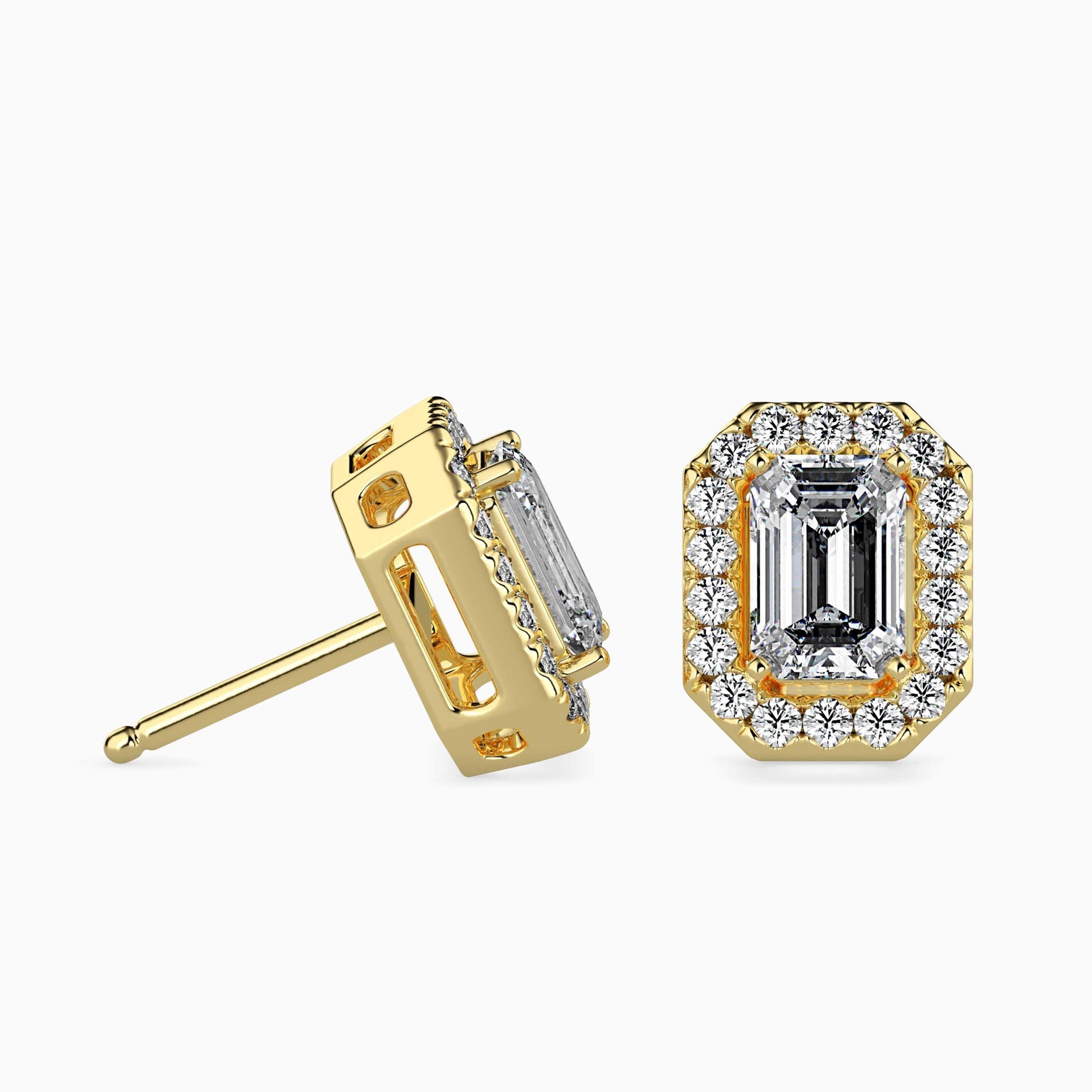 1 Carat Emerald Solitaire Studs with Halo
