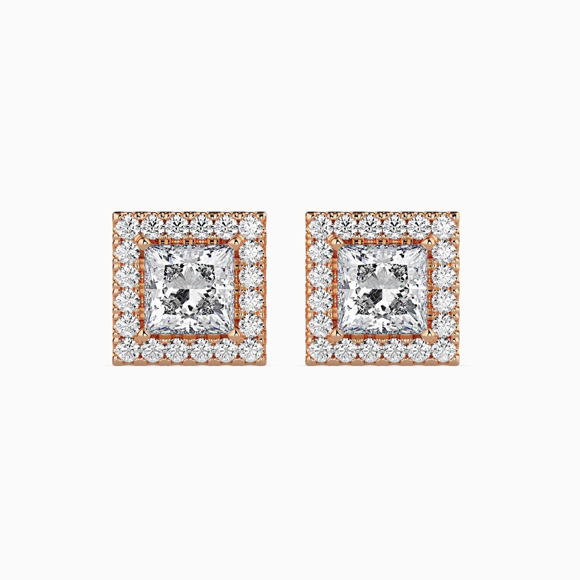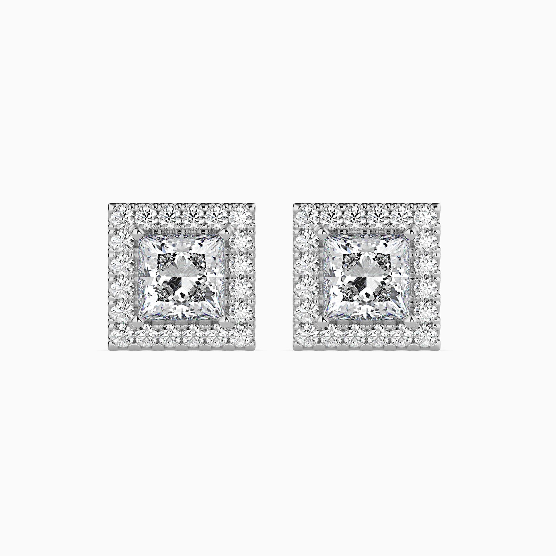 1 Carat Princess Solitaire Studs with Halo