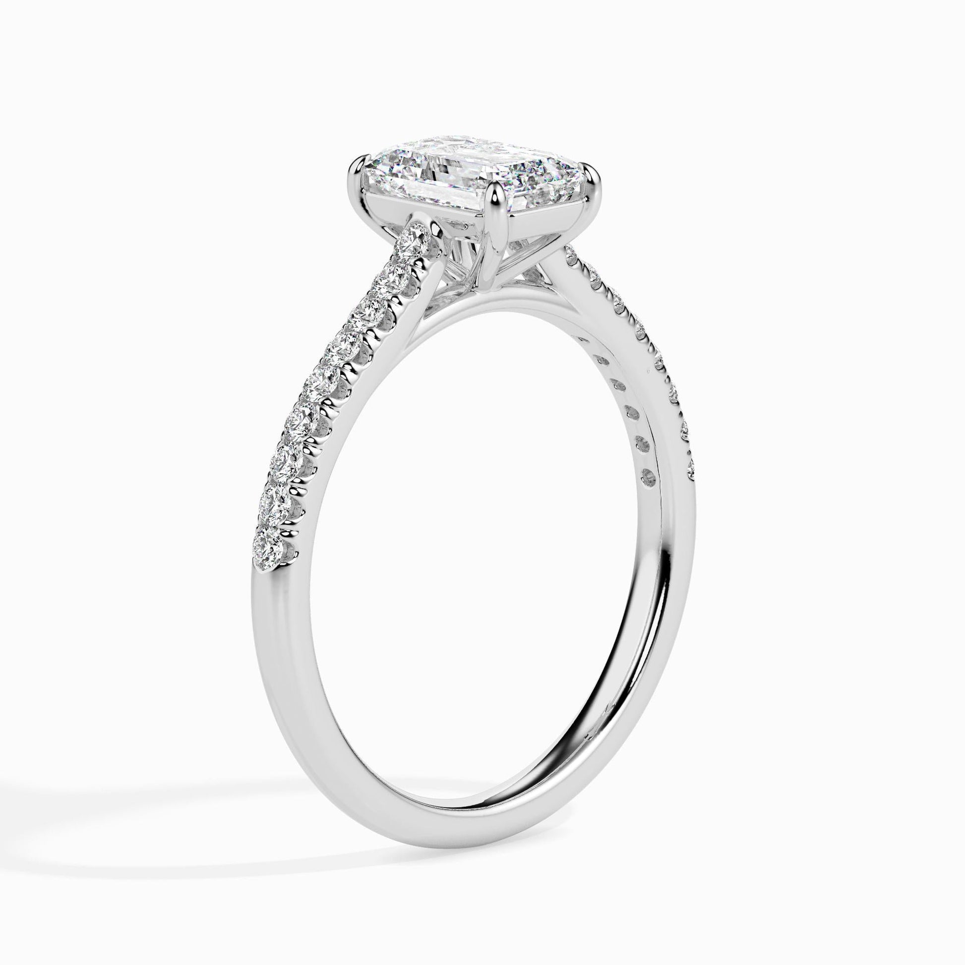 50 Cent Emerald Solitaire Ring in Diamond Band